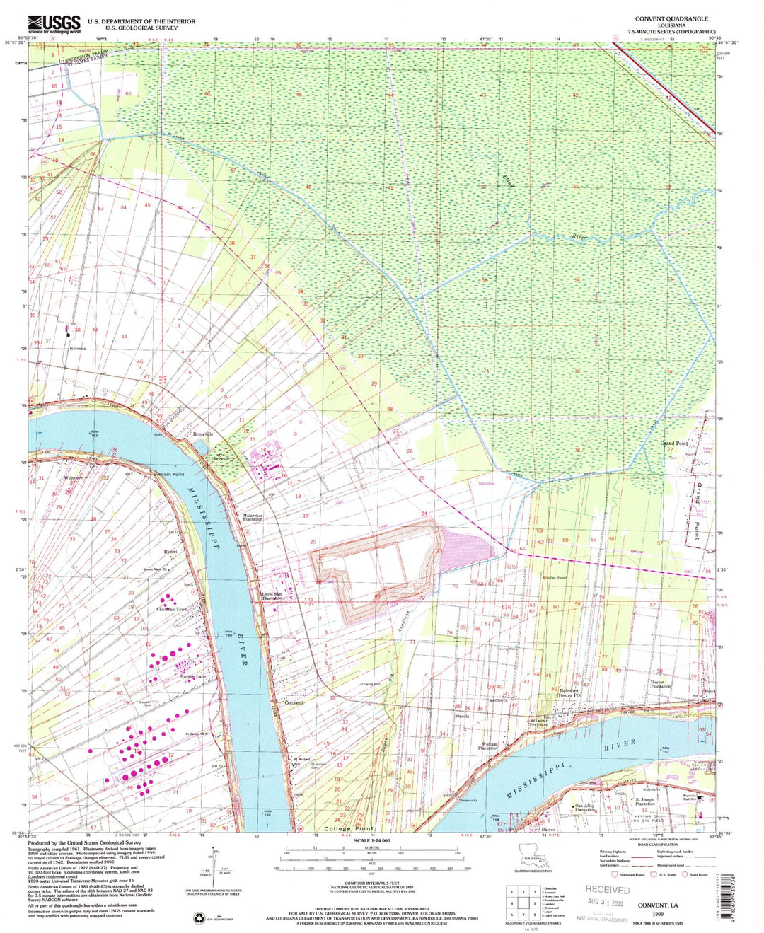 Classic USGS Convent Louisiana 7.5’x7.5′ Topo Map โ MyTopo Map Store