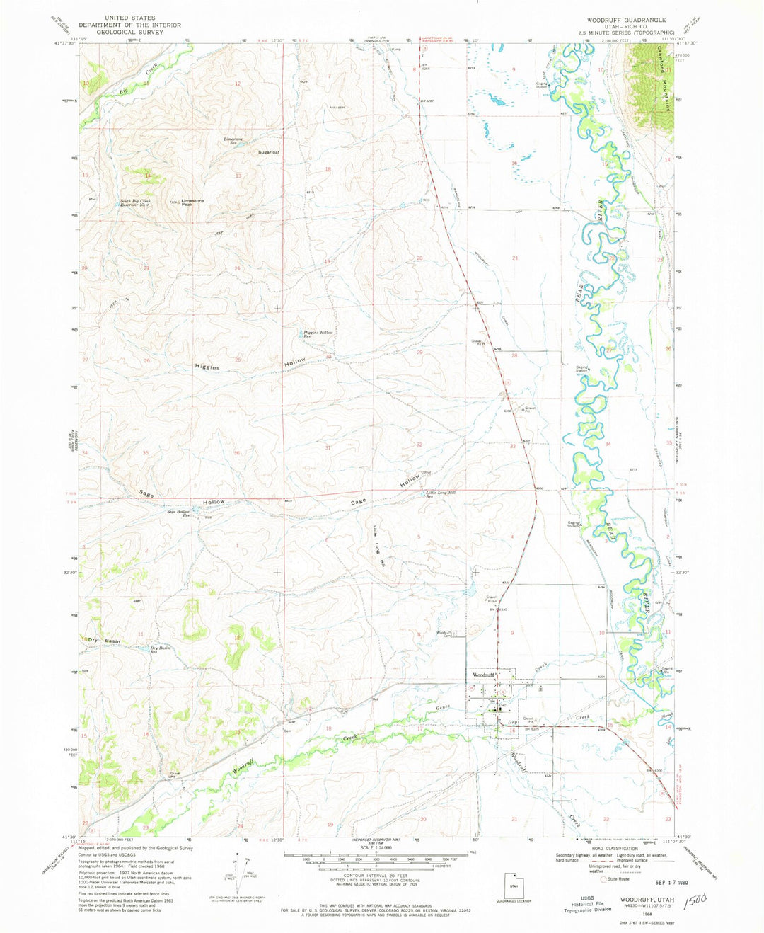 Classic USGS Woodruff Utah 7.5’x7.5′ Topo Map โ MyTopo Map Store